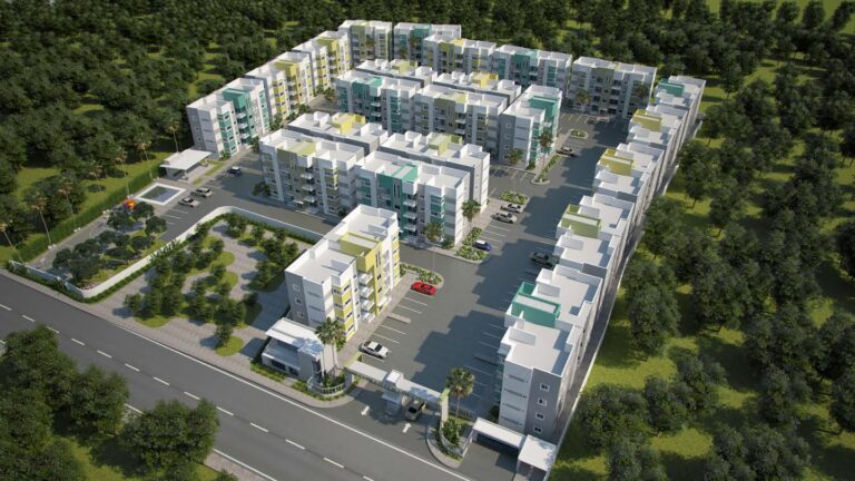 Este proyecto cuenta con edifiaciones por edificio de cuatro niveles, en bloques de seis (6) apartamentos, los cuales están distribuidos de dos unidades por nivel. El proyecto en su totalidad cuenta con docientas (200) unidades habitaciones. Asi como también de una plaza cn dos niveles el cual tendra áreas de servicios, como es minimarket, salón de belleza, espacio para miltiples usos, un total de sesenta (60) parqueos, local para oficinas de COOPVIVE, etc.